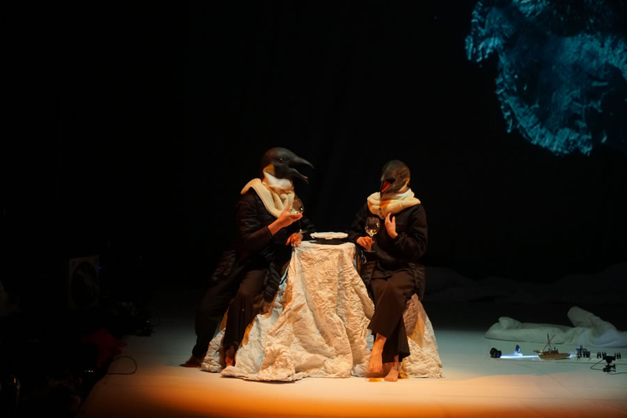 ” ¿Cuál fue tu última experiencia inútil? Islas desiertas se vale de las experiencias y reflexiones de dos de los grandes fracasos de la historia, la aventura de la aviadora Amelia Earhart y la expedición antártica del explorador Ernest Shackleton. Toda la obra está bañada por su transmisión cultural, por su camino vital hacia la utilidad de esas cosas inútiles. Los protagonistas de esta historia invitan al público a través de sus móviles a subirse a bordo de una expedición hacia una isla desierta, que flota en el espacio-tiempo (en el Pacífico, en la Antártida, en la Indonesia de hace 40.000 años?). Este viaje fraccionado en etapas se convierte en un acto poético y una experiencia, una bella aventura contemporánea en la que se muestra otro camino, otra alternativa a la competitividad y productividad de la sociedad actual abrumada por el éxito, las metas y la posesión de bienes”.